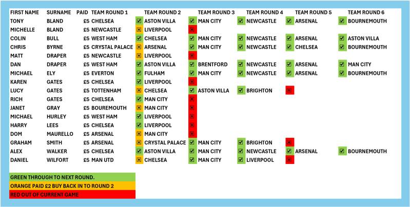 LAST PLAYER STANDING ROUND 6 SELETED TEAMS